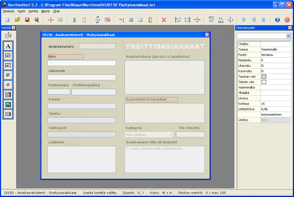 Klaani on helppokäyttöinen ja monipuolinen kortisto-ohjelma. Ohjelma sopii erinomaisesti jäsenrekisterin ylläpitoon, asiakasrekisteriksi ja erilaisten asioiden luettelointiin. Ohjelma sisältää kymmenittäin valmiita korttimalleja eri käyttötarkoituksiin. Voit myös luoda täysin omia korttimalleja ohjelman mukana tulevalla korttieditorilla.